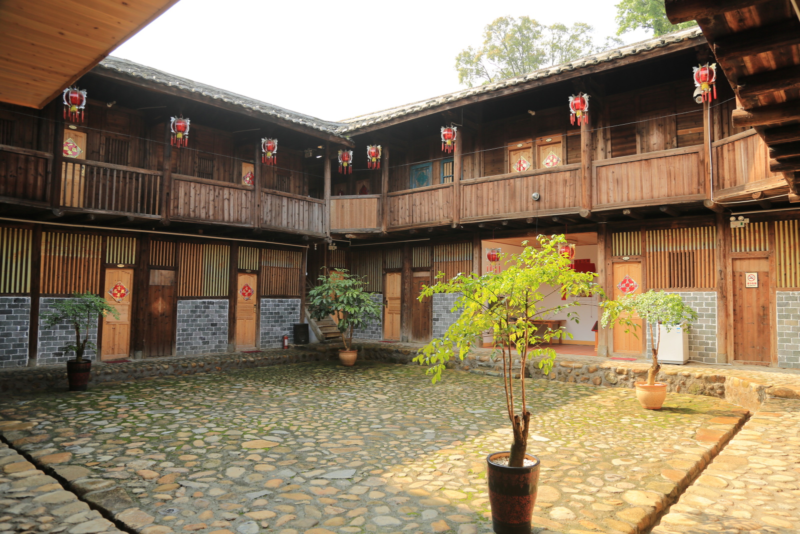 洪坑土楼群位于永定县湖坑镇洪坑村,形成于宋代末至现代,现存圆楼、方楼、宫殿式土楼、五凤式土楼、府第式土楼等30多种百余座客家土楼,是建筑种类、风格最多的土楼群,如果说永定是一个没有大门的中国土楼民居博物馆,那么洪坑土楼民俗文化村俨然就是浓缩永定客家土楼的博物馆。 这个平常的自然村落,因至今犹存三十多座大小不一、方圆各异的客家土楼而扬名天下。村中有最富丽堂皇的“土楼王子”振成楼、最小的“袖珍圆楼”如升楼、布达拉宫式的奎聚楼、府第式的福裕楼,还有土墙最厚的景阳楼。它们天然镶嵌于梯田山谷间、弯曲溪岸上,与山林、小溪、自然村落组成旋律优美的田园牧歌。 一座座土楼,犹如一部凝固的音乐、一段定格的历史,在大山重围的小山村中向世人诉说着客家人的创业精神和生活文明。 洪坑这个居住着五百余户人家、二千多人的小山村,四面群山环抱,洪川溪清澈活泼,蜿蜒着穿村而过。站在溪桥上,看青山如黛连绵起伏,两岸土楼雄伟古朴。
